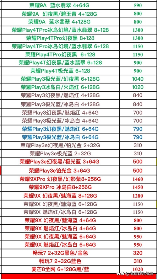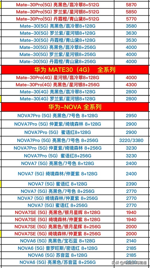 近日我在一些论坛中看到有人评价华为手机在国内的售价不良心,为了验证这个问题,所以我曝光下华为全系列手机最近进货价格,当然,这份进货价格是手机店在代理商那进货的价格而不是代理商从厂家进货的价格,从这份进货价格表上可以分析得出网上对华为的评价是子虚乌有,评价者戴着“有色眼镜”进行的评价,没有依据客观事实,华为品牌手机的价格相对美国苹果和韩国三星来说已经足够良心了,任何品牌手机都有高端机、中端机和低端机之分,华为也不例外。