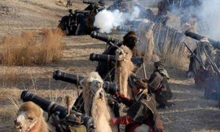 此外,还有著名的“驼城战术”,这是当年准噶尔军队的用法,将上万骆驼搭起箱垛,盖上湿毡,依山列成“驼城”,然而骆驼上搭载小型火器,准噶尔军队也埋伏在里面,放箭放铳,这种战术后来被清军以猛烈的炮火击溃。