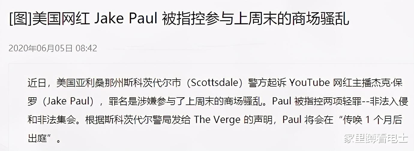Jake火的时候有很多迷恋追随他的nc粉,迅速积累财富后的得意忘形,让他惹了不少事,BLM活动的时候去商场扫楼被起诉非法入侵和非法集会。人生失控,为博眼球不择手段。