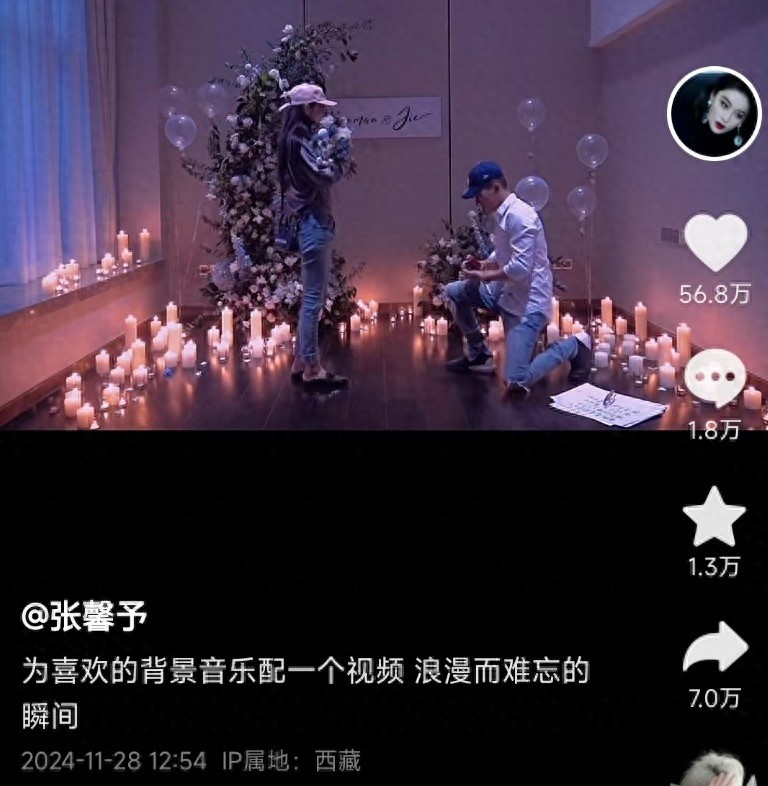 11月28日,演员张馨予在个人社交平台分享了一段老公何捷向她求婚时的视频大秀恩爱。话说,当年张馨予都没有公开过这个求婚视频,没想到时隔多年还能再度一睹夫妻俩当年的恩爱甜蜜,依旧很甜、很让人羡慕啊。张馨予还发文写道:“为喜欢的背景音乐配一个视频,浪漫而难忘的瞬间”,确实很难忘啊。