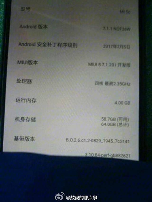 小米5C有松果和高通两种处理器版本 搭载Android7.1