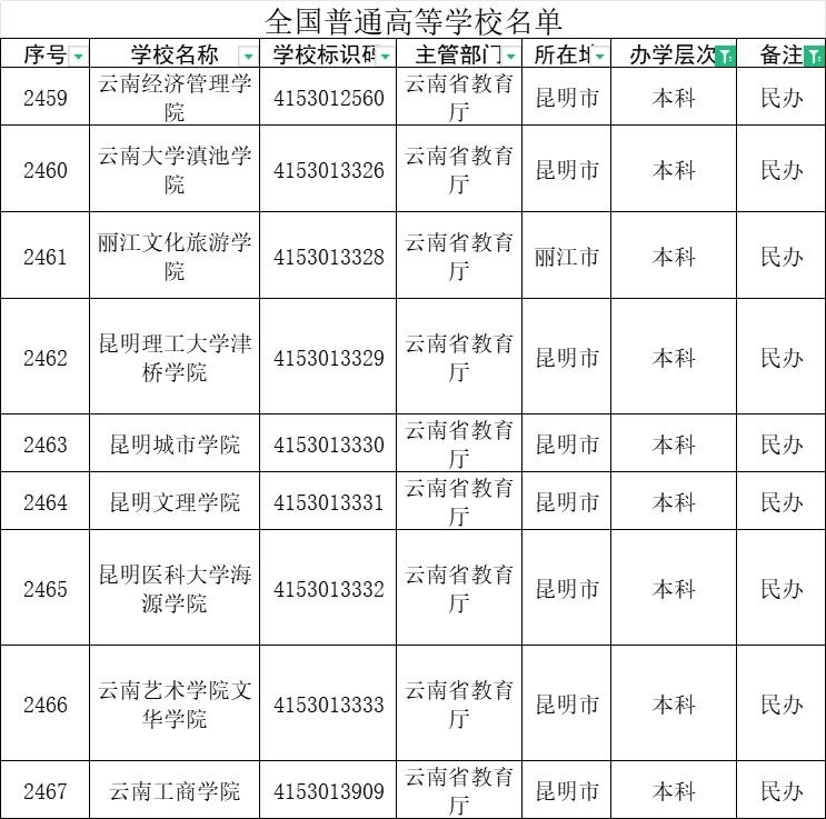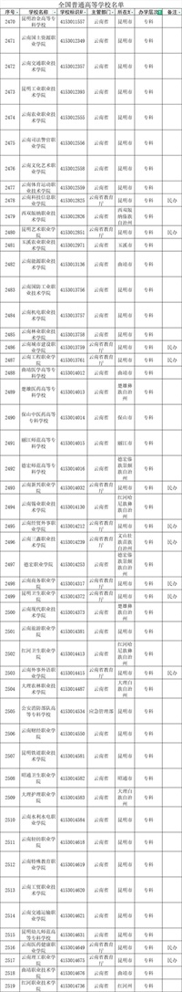 全国普通高等学校名单