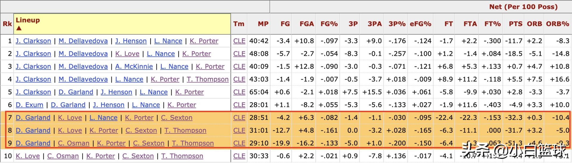 要知道,本赛季至今骑士在3套阵容中能会同时将小凯文-波特与达里乌斯-加兰德和科林-塞克斯顿同时放在场上,但这3套阵容的整体表现并不理想,这也是为什么从长远来看让波特进入首发阵容搭档加兰德和塞克斯顿并不是那么可行选择的原因。