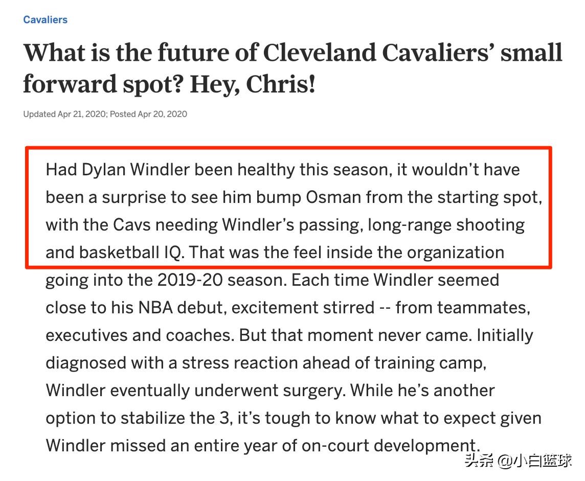 美媒克里斯-费多的文章中就认为如果迪伦-温德勒能保持健康,那么他完全可能取代赛迪-奥斯曼并且成为骑士首发3号位: