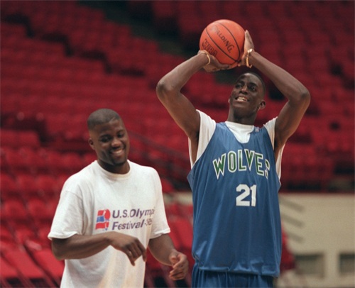 然而加内特心中早有篮球的火种,赛场征战的梦想难以熄灭。每当有机会,他都会偷偷溜出去打球,虽然那时并没有接受正规的训练,只能通过模仿偶像"魔术师"约翰逊的动作自学技艺。