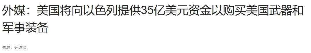 环球网:2024-8-10:外媒:美国将向以色列提供35亿美元资金以购买美国武器和军事装备