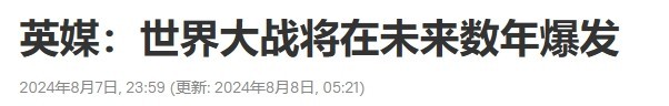 俄罗斯卫星通讯社:2024-8-7:英媒:世界大战将在未来数年爆发
