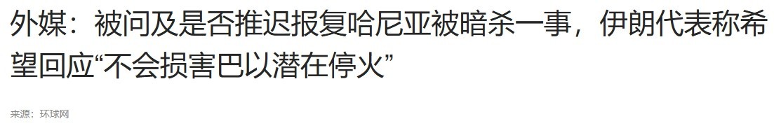环球网:2024-8-10:外媒:被问及是否推迟报复哈尼亚被暗杀一事,伊朗代表称希望回应“不会损害巴以潜在停火”
