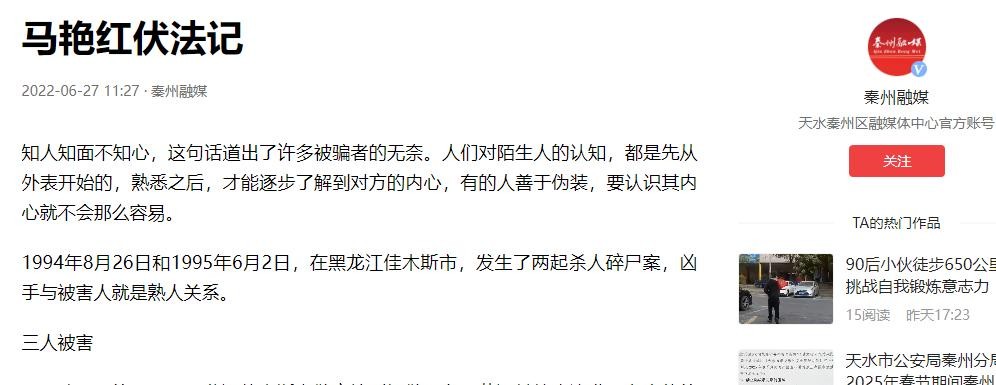 有些人看起来人畜无害,但有可能正是丧心病狂的杀人凶手,黑龙江的马艳红就是其中之一。