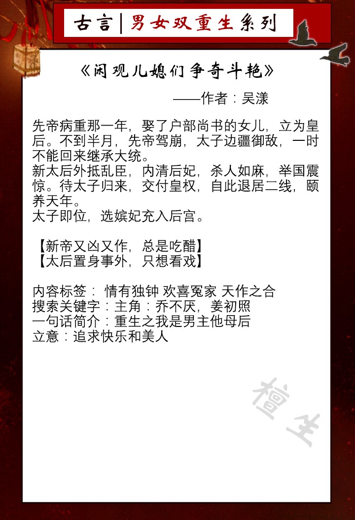 最近质量上乘的男女双重生文有点多呀,先来一波推荐,献给喜欢阅读的书友们!