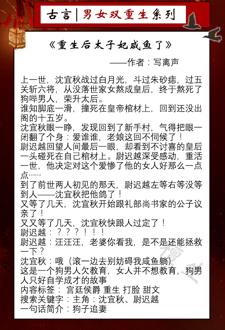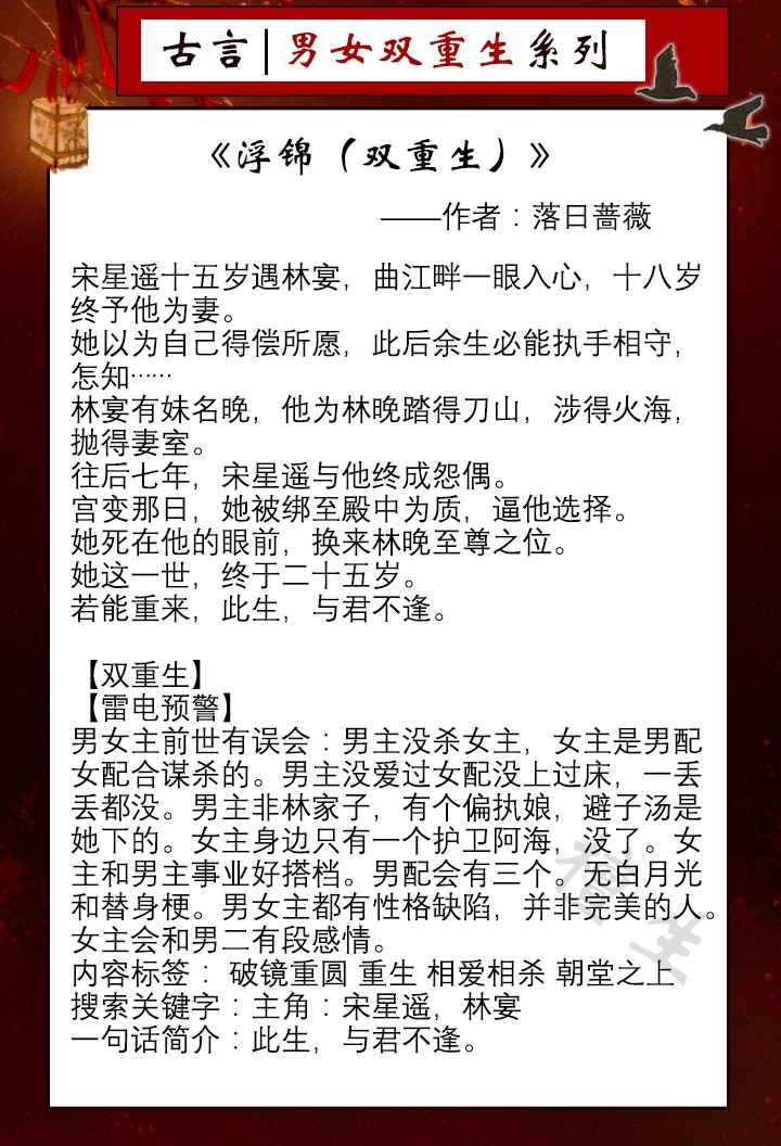 男女主双重生古言盘点!前世怨偶今生再聚!且看寡情男追妻火葬场