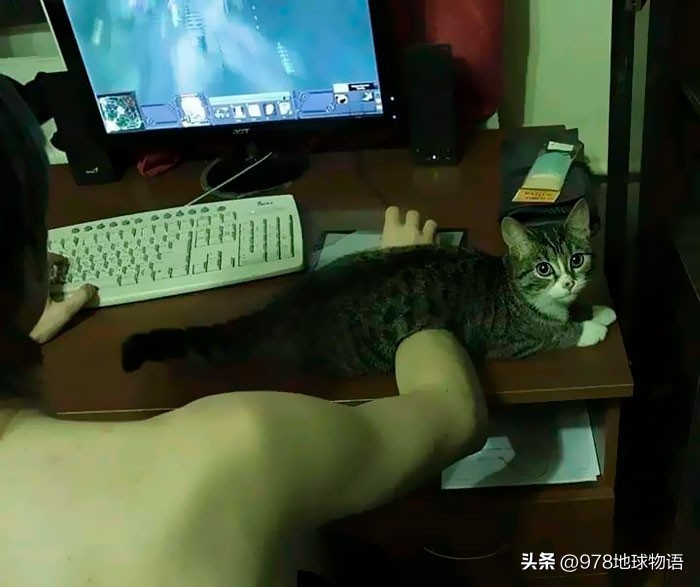 撸猫玩游戏两不误。