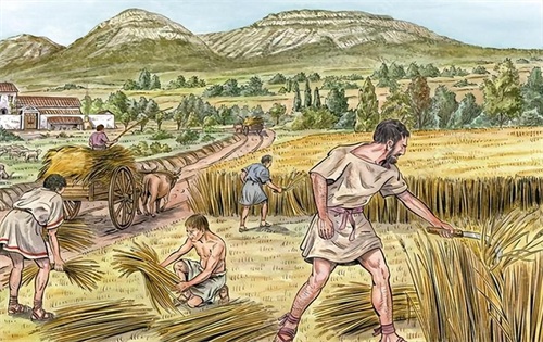 奴隶农业在古罗马的粮食生产中起到了关键的作用,大量的奴隶被用于农田的耕作、播种、收割和处理农作物。