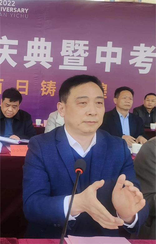 他肯定了勤奋好学,志存高远,自强不息的一初精神,鼓励学校坚定“人人都是成功者”的办学理念,全面实行素质教育,大力推行新课程改革,为我县教育发展再立新功。最后他祝愿曹县一初十年校庆和中考誓师大会圆满成功。