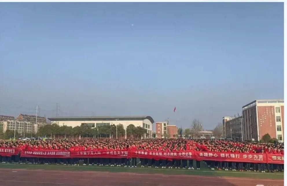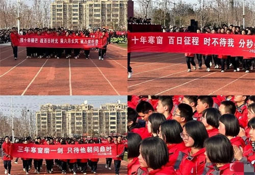 在鼓舞人心的乐曲中,毕业班的学子们高举条幅,斗志昂扬,步伐铿锵,口号嘹亮,接受检阅。