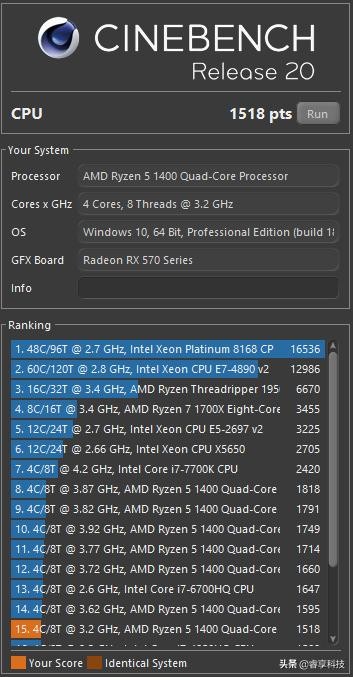 跑完CPU-Z,再试试cinebench,综合评价分数大家都比较认可: