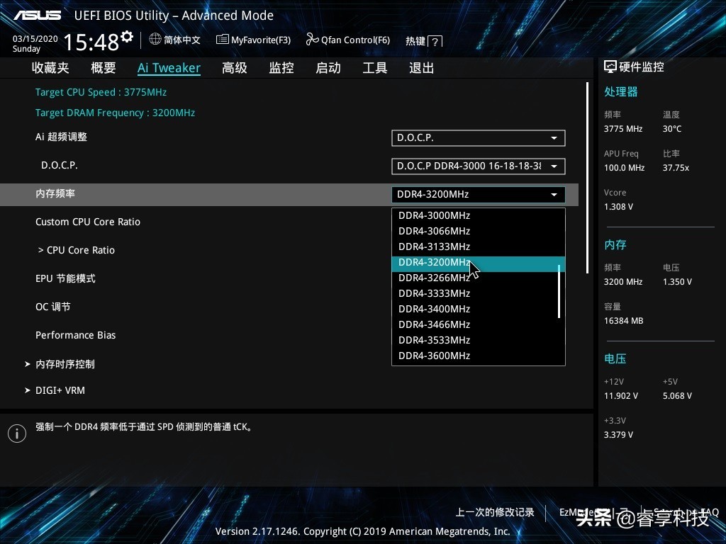 还要选择对应的频率,经测试本条可以稳定3200 C16