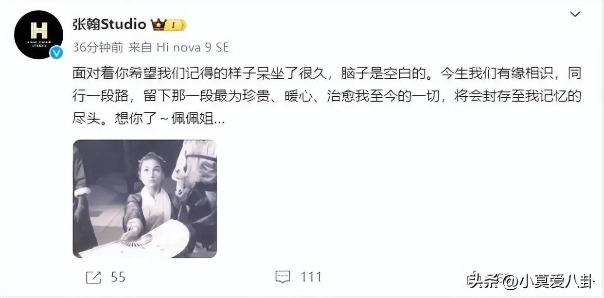 但是,非常戳人的一个细节是在经纪公司发文之后,刘涛才发文悼念最好的大姐,佩佩姐,字里行间都是不舍与难过。