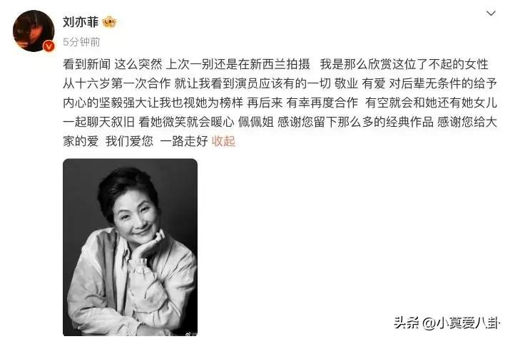 众星发文悼念郑佩佩,刘涛赴美送最后一程