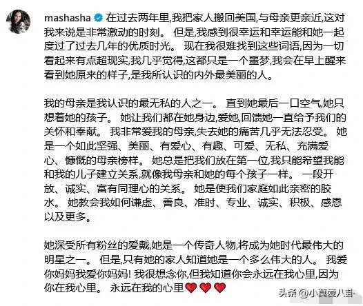 郑佩佩女儿原子惠晒视频发长文悼念母亲:“早上醒来时我会看到最本真的她,她是我所知的,外表和内心都最美丽的人”,“母亲是最无私的人之一。她如此坚强、魅力、有爱心、有趣、可爱、慷慨。”多么希望这是一场噩梦……
