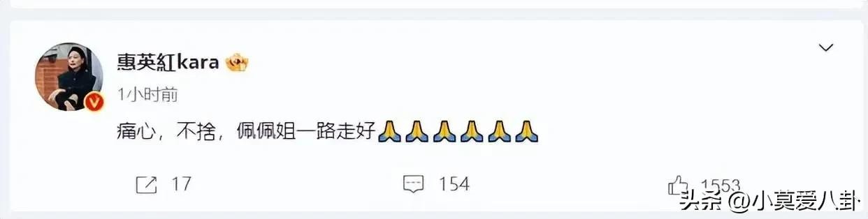 惠英红、张凯丽 、张钧甯、李若彤、刘涛、金晨、张雨绮、吴樾、黄海冰、曹可凡、胡歌、刘亦菲、张瀚、刘涛等多位生前好友发文悼念。回顾往昔,愿她一路走好。