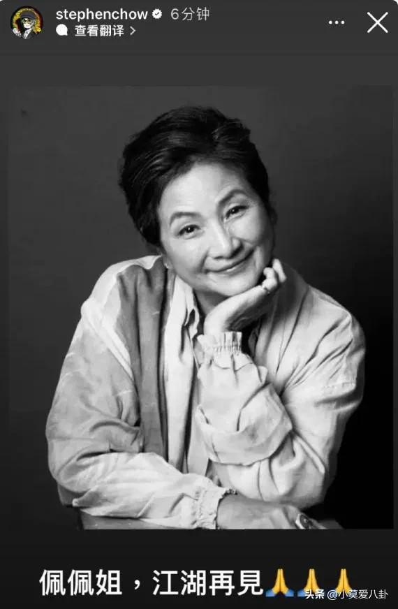 曾和郑佩佩一起出演《唐伯虎点秋香》的周星驰在社交平台上写道“佩佩姐,江湖再见”。