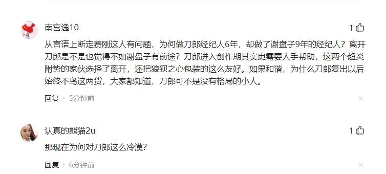 从言语上断定费刚这人有问题,为何做刀郎经纪人6年,却做了谢盘子9年的经纪人?离开刀郎是不是也觉得不如谢盘子有前途?