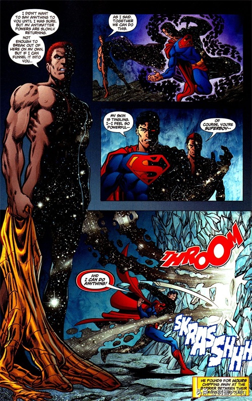至尊下超人甚至能够从神速力中挣脱出来,要知道不管是巴里.艾伦还是沃利.韦斯特还有其它很多极速者都曾经被困在神速力中无法挣脱。在《无限危机》中至尊小超人被很多极速者一起推入了神速力,而不久他就单纯凭借力量脱困而出。