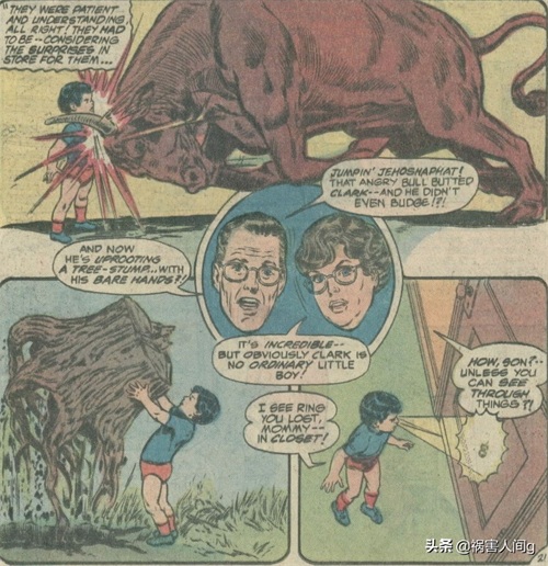 进入白银时代以后,这个超人成为了平行宇宙地球二的超人,而主宇宙地球一的超人同样在小孩子时就体现出了强大的力量,在1979年漫画《动作漫画》#500中婴儿时期的超人硬扛了公牛的撞击。