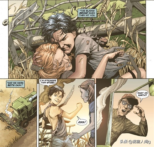 进入新地球时代,在2009年的漫画《超人:秘密起源》中,为了在开动的收割机下救青梅竹马的拉娜.朗,超人用身体护住了拉娜.朗,因而撞坏了收割机。