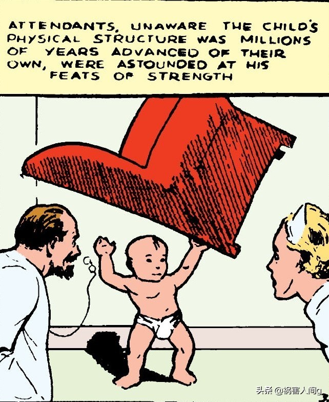 超人诞生于1938年漫画《动作漫画》#1,漫画中描写了超人在婴儿时就体现了强大的力量。