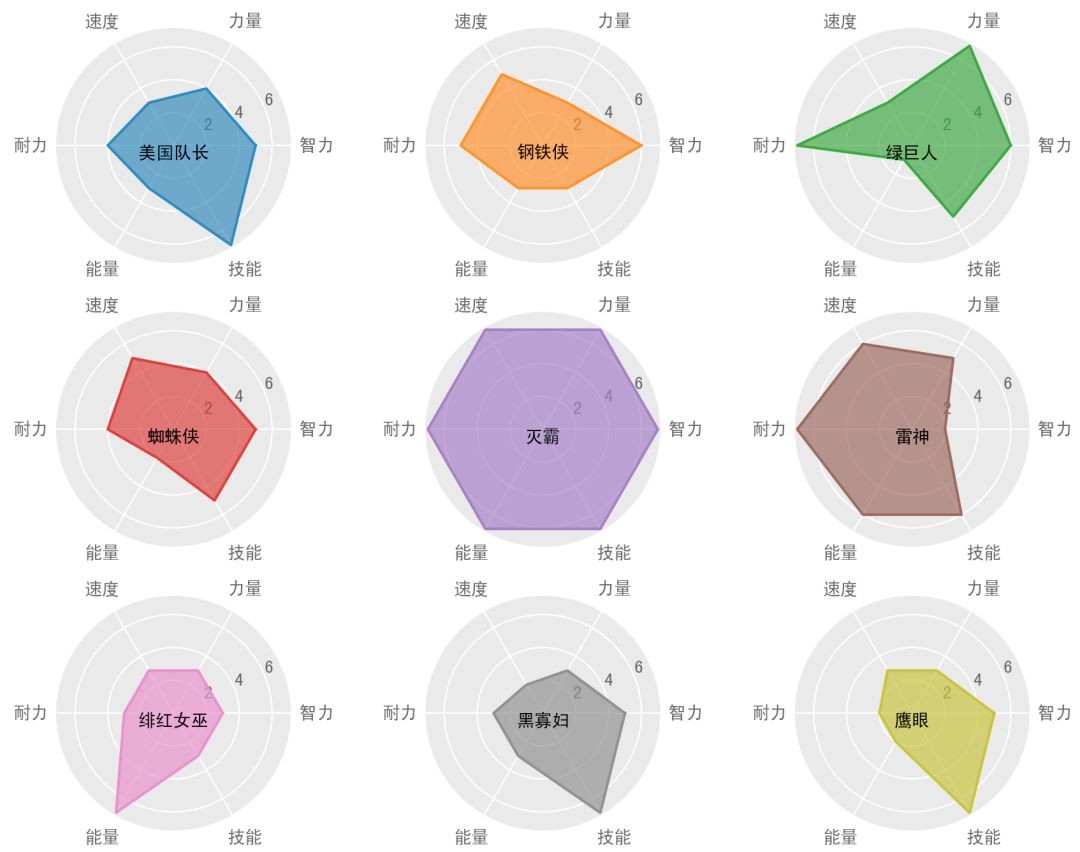 Matplotlib绘制漫威英雄战力图,带你飞起来