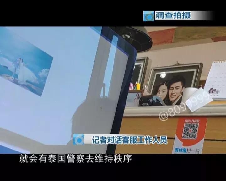 记者对话客服人员:“你在公共区域就是中国游客很多的地方,就会有泰国警察去维持秩序,如果被泰国的警察看到了,你穿着婚纱拿着相机在那里拍照,大声喧哗,他就会过来找你麻烦。”