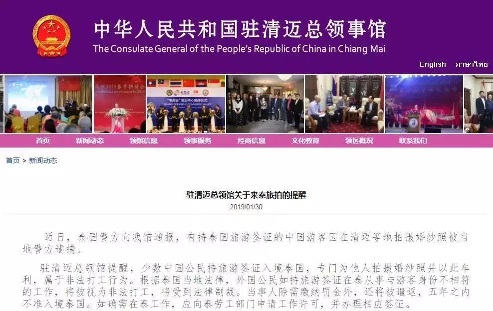 1月30号,中华人民共和国驻清迈总领事馆官方网站上也发布了一则,关于赴泰旅拍的提醒。