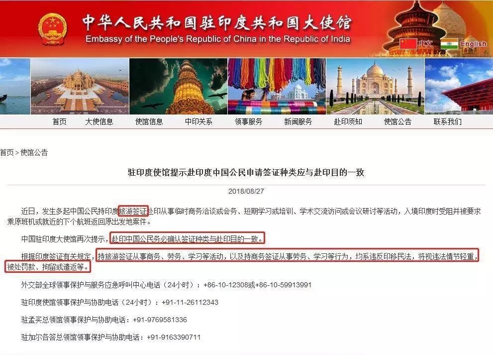 同时,中国驻越南、印度等领事馆也都曾发布过类似提醒,严禁从事与签证种类不一致的活动。