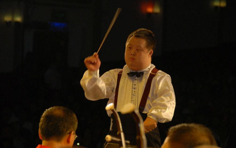 他每天都会在乐队排练的时候,一个人在旁边默默的、但是又饱含激情地指挥,而他对于指挥的喜爱吸引到了一个人,那就是湖北电视台导演张以庆。