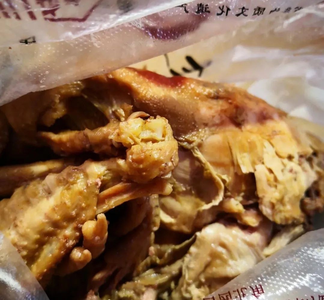 烧鸡的肉质不柴,外皮不酥,但是另外一种细腻,是好吃的。