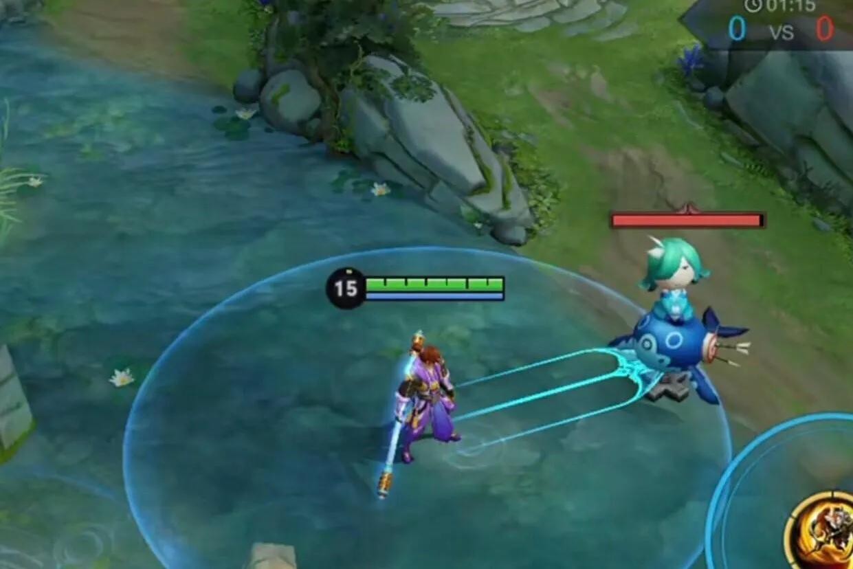 然后就是有一点点空棍,原理很简单,使用一技能后,再敲到地方之前快速接二技能,也是同样可以做到接近敌方英雄,特点就是前面的一棍不能敲出来,不能打出伤害,为什么这样做呢?当我们跳板只有一丝血时,也就是扛不住我们的一棍时,此时就要使用空棍了,因为不用空棍的话,一棒把它敲死我们是无法跳跃的。所以这就是空棍的用处,