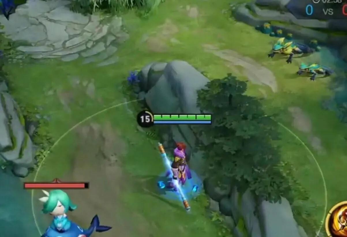 我们看到的身法猴也就是利用这样的操作,一技能敲一棍,然后用二技能快速跳开,不能用完二技能直接敲过去,这样就无法跳开了。并且到后期,二技能冷却是非常短的,在强化普攻没消失之前二技能又好了,所以猴子就有了存棍,在草丛提前用一个二技能。二技能快好时候出去敲,这样就做到了秒敲4棍的操作