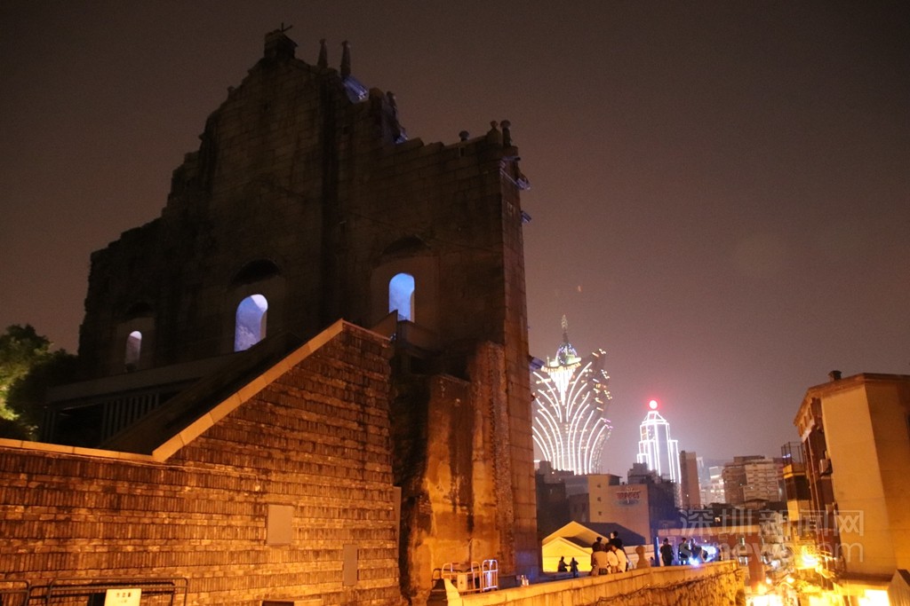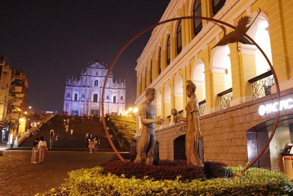 澳门大三巴牌坊,拍摄于2019年4月5日晚9时许(张玲摄)