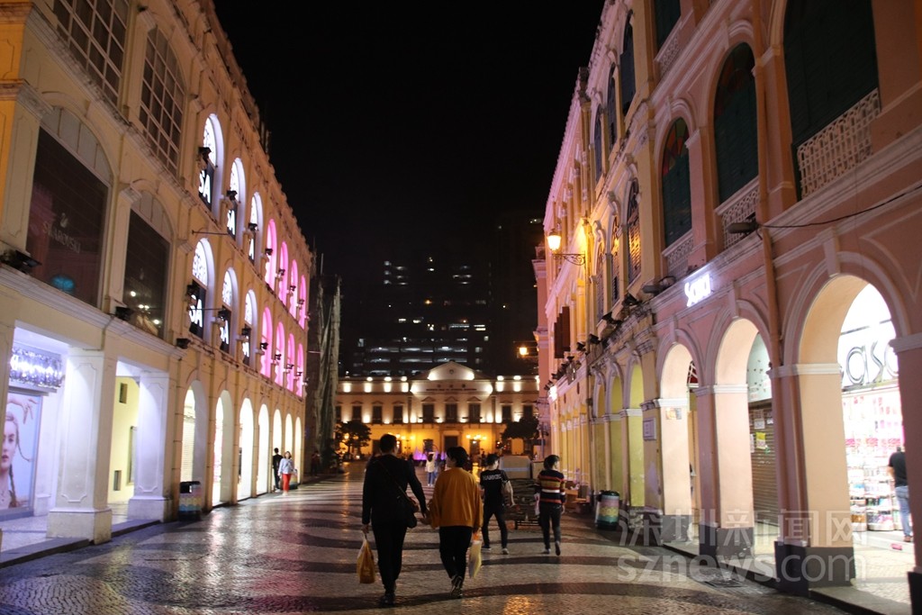 这里是澳门的议事厅前地,在入夜后的街道行走分外怡人