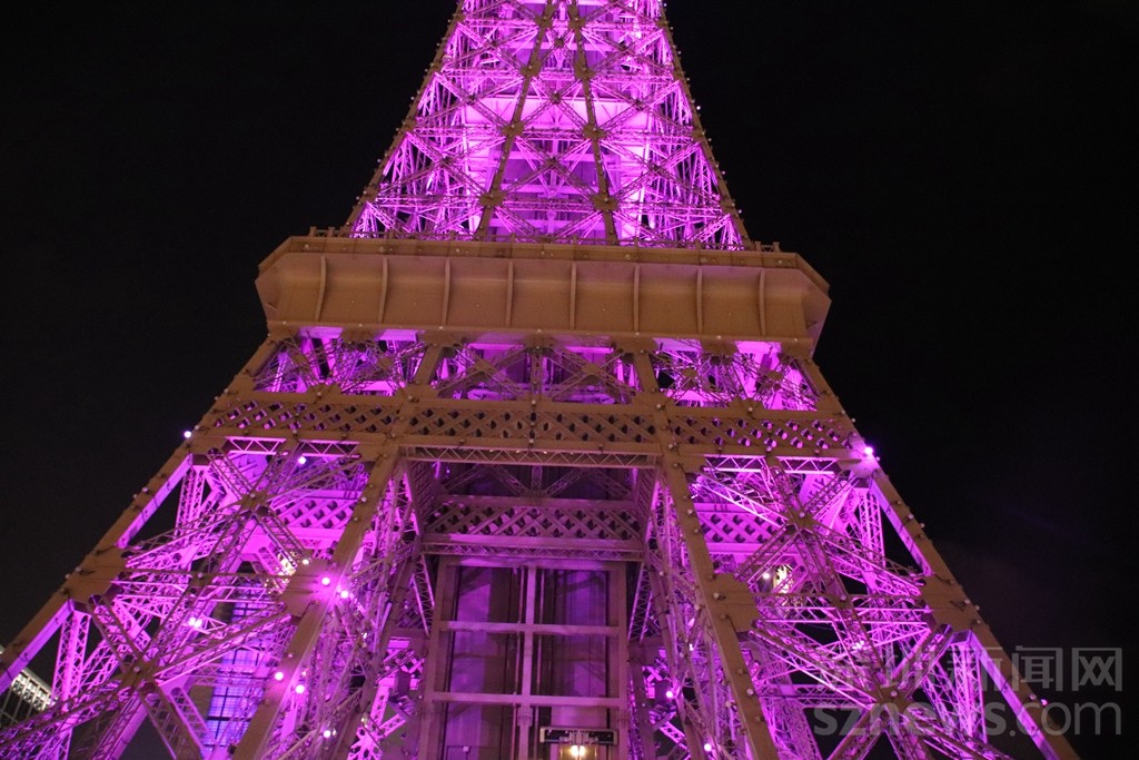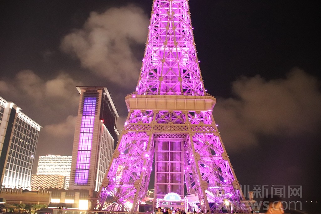变幻紫色灯光的澳门版埃菲尔铁塔