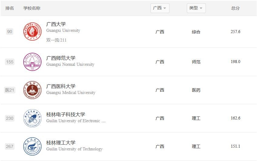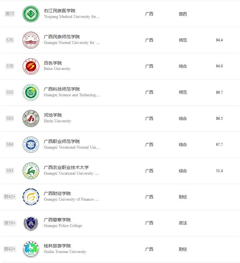为了全面、客观地评估这些学校的实力,我们参考了中国软科排名这一权威的评价体系。该排名体系涵盖了学校水平、学科实力、资源配备、师资队伍、人才培养、科研实力以及社会服务等十个维度,确保了评价的全面性与公正性。在广西的高校中,广西大学、广西师范大学、广西医科大学、桂林电子科技大学和桂林理工大学跻身前五,它们分别代表了综合、理工、医药等多个领域的杰出代表,共同彰显了广西高等教育的全面实力。