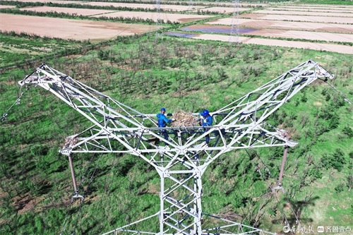 从那时开始,如何实现“线鸟和谐”,成为困扰贺文君和班组的一大难题。在这之后,他们开始了爱鸟护线试点工作,一方面在电力铁塔上安装人工鸟巢,创新提出了“同塔移巢安置法”,在不影响东方白鹳栖息的前提下,将鸟巢移至塔上安全的位置,先后搭建起5处人工鸟巢并都已成功入住。另一方面,开展护鸟措施覆盖安装,绝缘护套与复合绝缘防鸟罩搭配使用,在全省率先实现220千伏输电线路新型措施全覆盖,为铁塔上的鸟儿营造更加安全的环境。