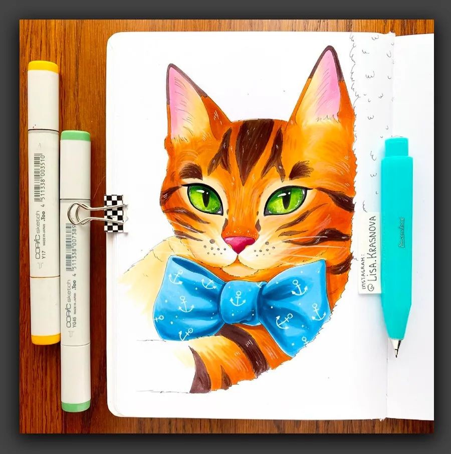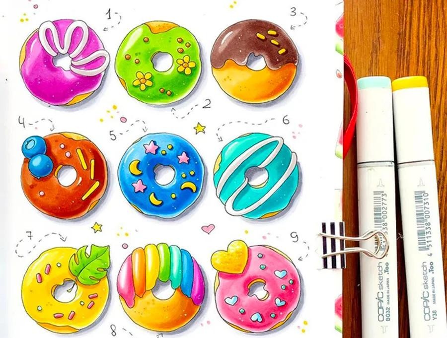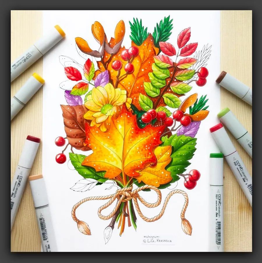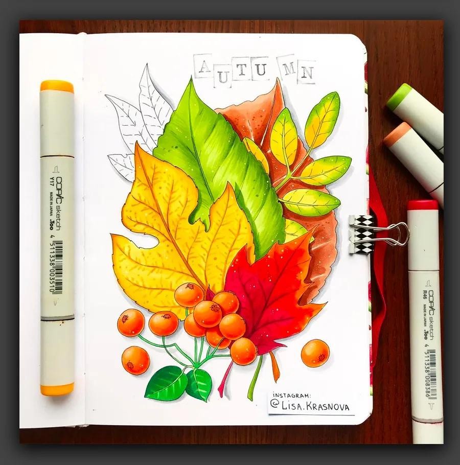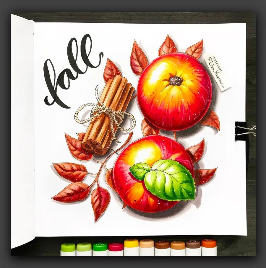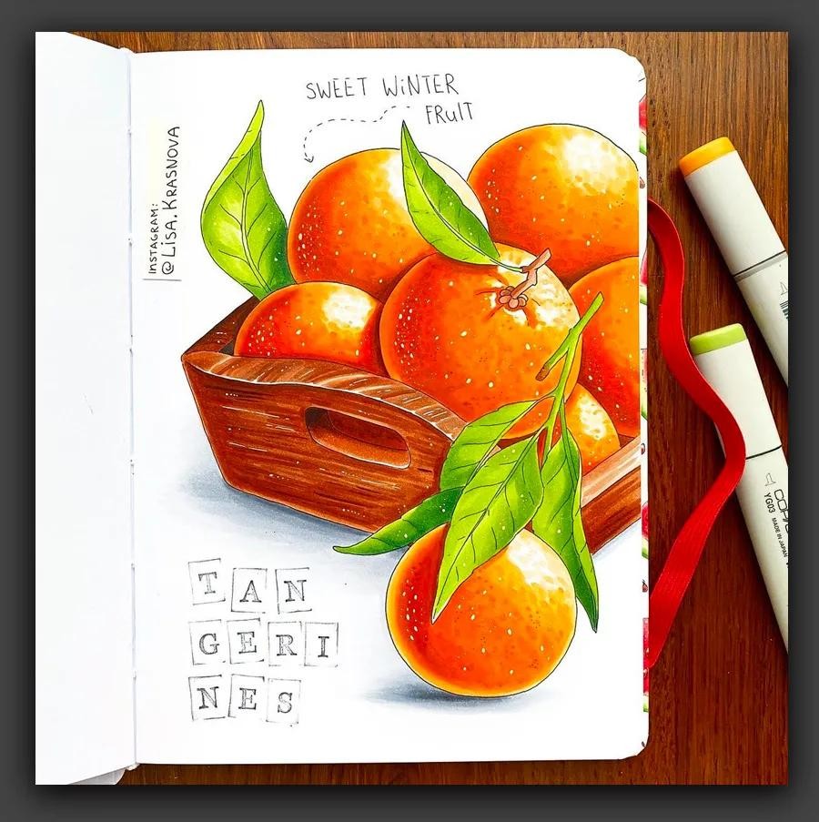 马克笔具有作画快捷、色彩丰富、表现力强等特点,无论是设计师还是绘画爱好者,马克笔都深受欢迎。马克笔的颜色多达数百种,种类繁多,每一种色彩又有不同的色阶,在动漫、室内、建筑、服装等不同的种类绘画中,都能达到非常出彩的效果。在运用马克笔绘画的过程中,可运用排笔、点笔、跳笔、晕化、留白等方法,表现出不同的色彩和质感。今天创意少儿美术馆为大家带来的作品欣赏,来自ins博主:lisa.krasnova。lisa非常喜欢用马克笔绘画,在她的练习本里,用马克笔记录着生活中的蔬菜、静物、美食等等寻常之物,但是lisa的色彩运用得非常富有装饰感,使普通的物品都散发着动人的魅力。这些马克笔手绘作品,色彩鲜艳细腻,绚丽明亮,柔和的色彩过渡,简洁明快的笔触,给人以明亮轻快的愉悦感。如果你也喜欢用马克笔进行作画,那么不妨点赞收藏篇文章吧,里面每一张作品都是非常不错的临摹素材哦!
