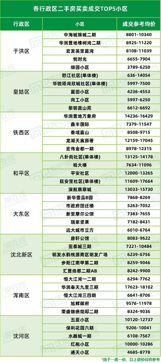 热销小区分别是:恒大江湾一二期、华润奉天九里三期、恒大江湾三四期、旭辉御府、荣盛锦绣观邸二期等。