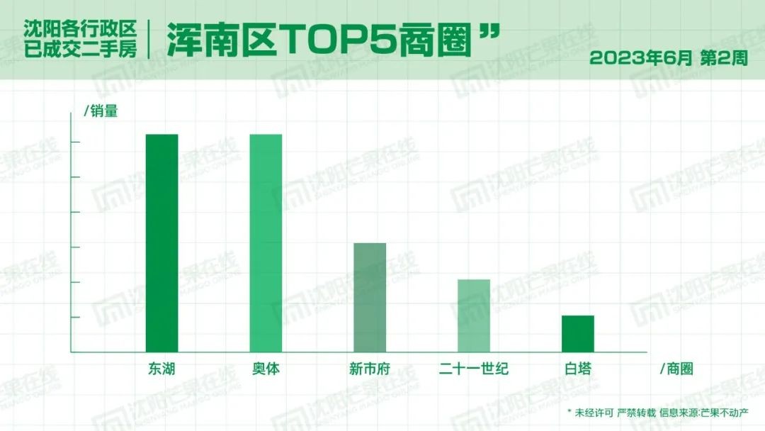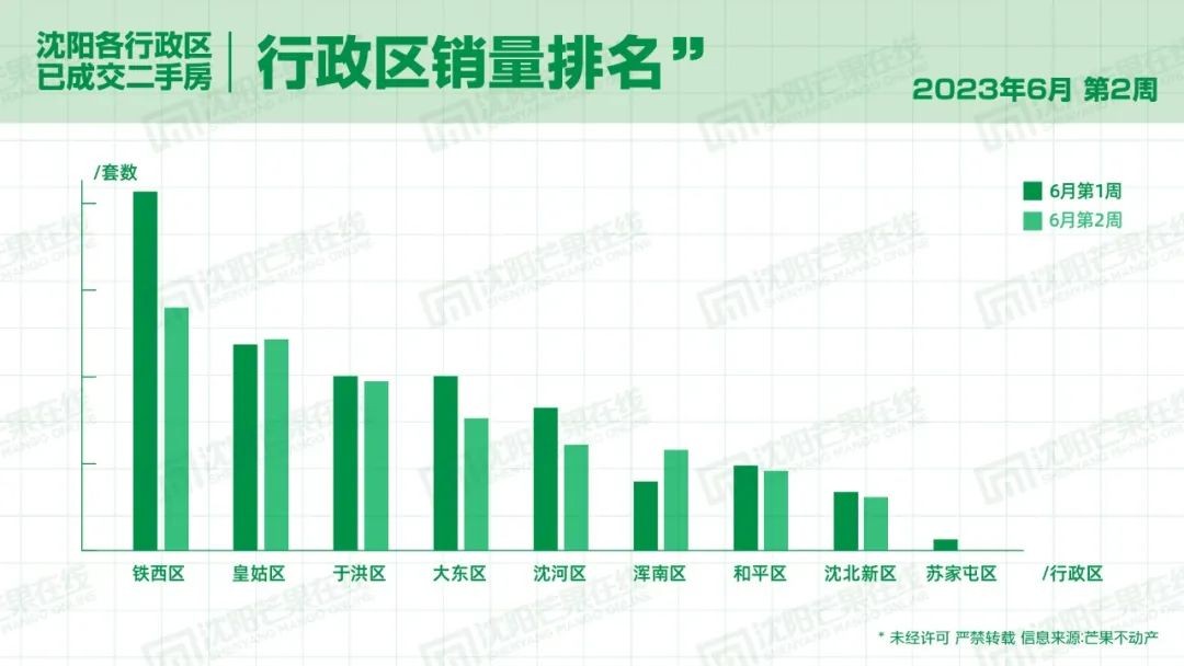 6月第一周销量前三甲:铁西区、 皇姑区、于洪区。