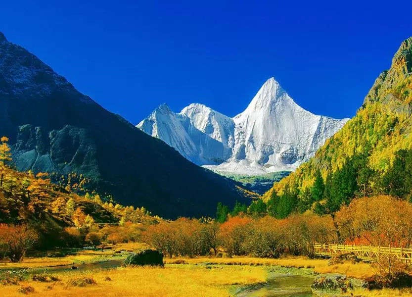 它位于甘孜藏族自治州,四川西南部位置,西藏、云南与之相邻。东经的度数为99度-100度,北纬的度数是28度,隶属于横断山脉。海报的高度跨度很大,2900米到6032米,特殊的地理位置也给他创造了独特的景观,是国内保存超级完整的生态景区。