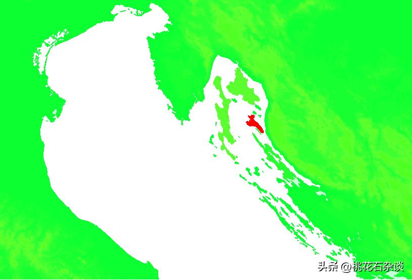 阿尔巴岛的位置,下方绿色陆地为意大利