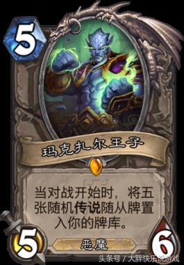 4.玛克扎尔王子。王子会在游戏开始时把五张随机传说随从塞入玩家的牌库,运气好的玩家可能会得到一些高质量的传说随从,运气差一点的玩家则会感觉到来自王子深深的恶意了,别问大胖我怎么知道。